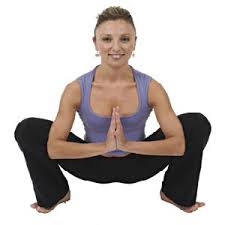 – put your hands together and elbows in touching the knees.