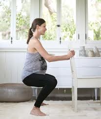 By using a chair to help you practicing this when your tummy is big.